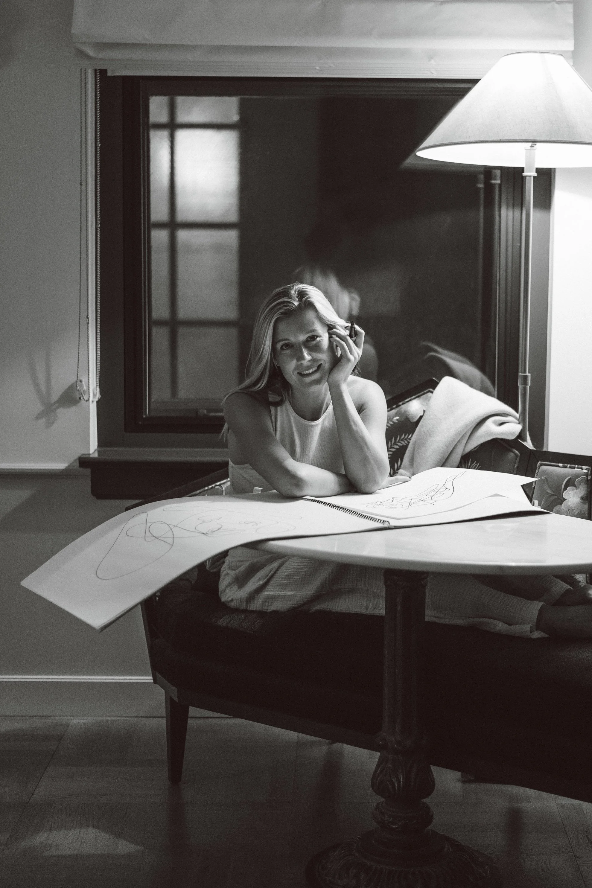 With a background in fashion and product design, her paintings serve as a visual diary and tool to process her own experiences and observations. She focuses on continuous line work within figurative acrylic artworks to embody universal emotions that facilitate human connection. She believes that in the same way the physical body uses the movements of gesture as a language, the spirit uses energetics. She materializes this invisible energetic language by distilling it into a single, continuous line of intrinsic and intuitive movement.